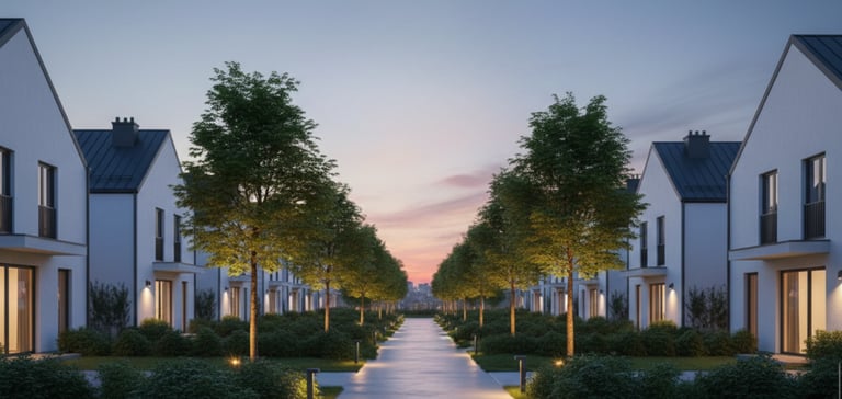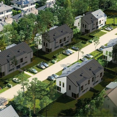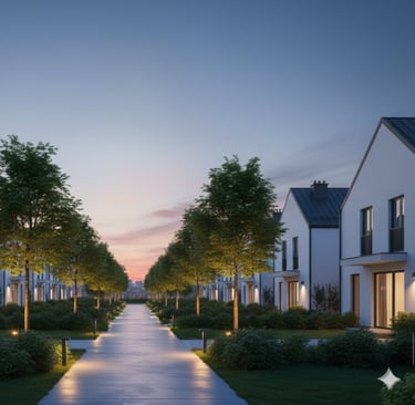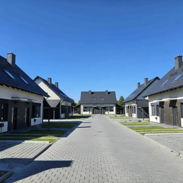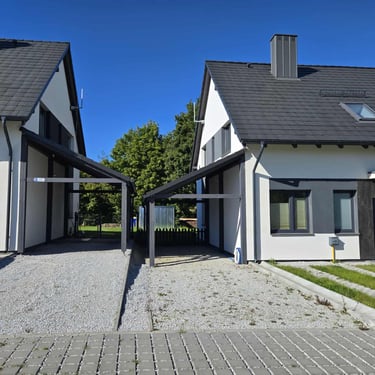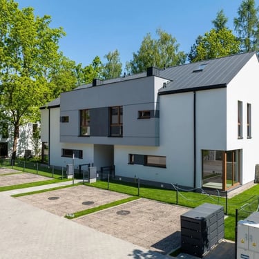 Osiedle Grodzisko wyróżnia się współczesnym stylem i jasną, harmonijną architekturą. Domy są energooszczędne, dobrze zaprojektowane i gotowe na nowoczesne rozwiązania — od instalacji solarnych po systemy magazynowania energii.
